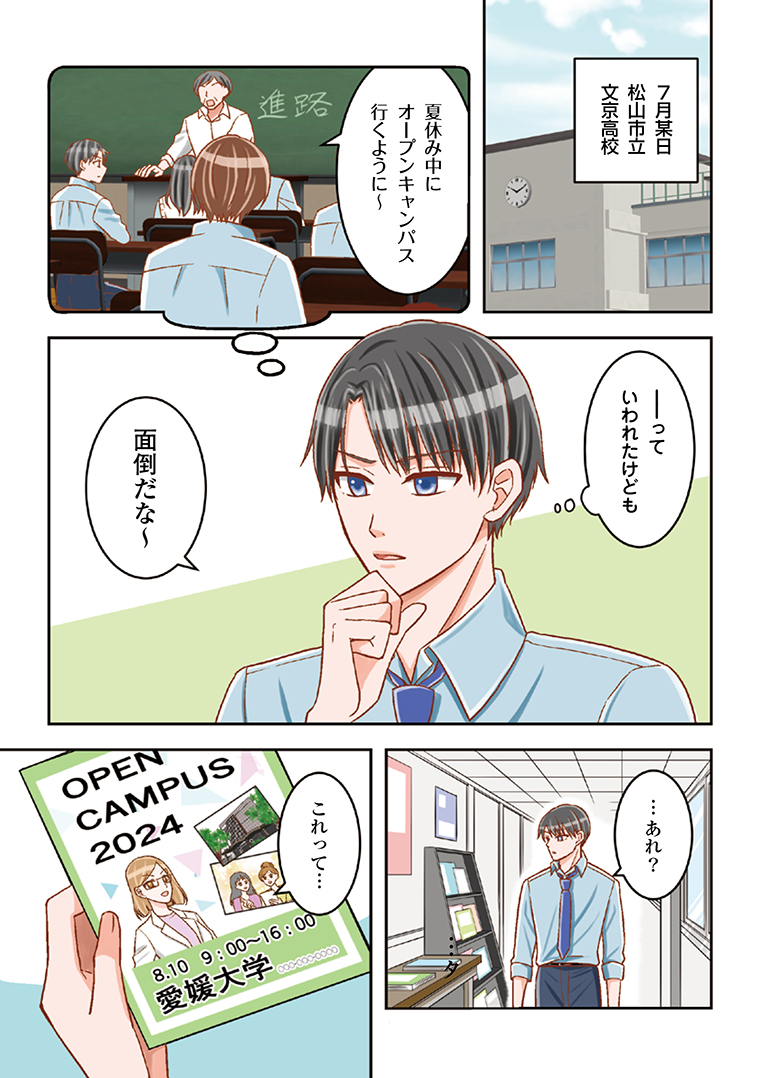 プロテイン・アイランド・松山(以下PIM)とは、愛媛大学・愛媛県・松山市・松山商工会議所・愛媛経済同友会の産学官連携で松山をタンパク質研究の拠点にしようと日々活動をしています。この活動を中学生・高校生に広く伝えるためにマンガ冊子を制作しました。